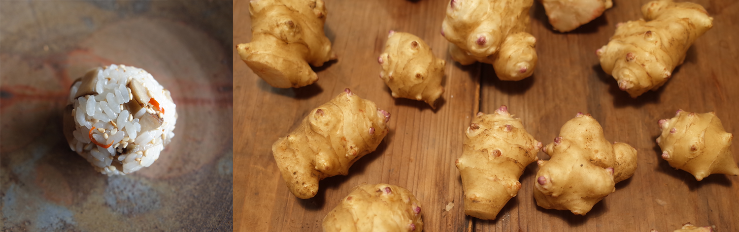 シャクシャクした歯触りの菊芋を甘辛いきんぴらにしてすし飯に合わせました。