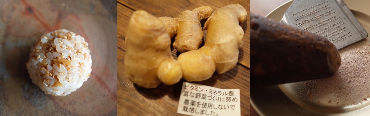 刻み生姜を黒砂糖で煮込み、たっぷりの炒りごまをあわせたおいなりさん。久在屋さんのふっくらお揚げとの相性抜群です。