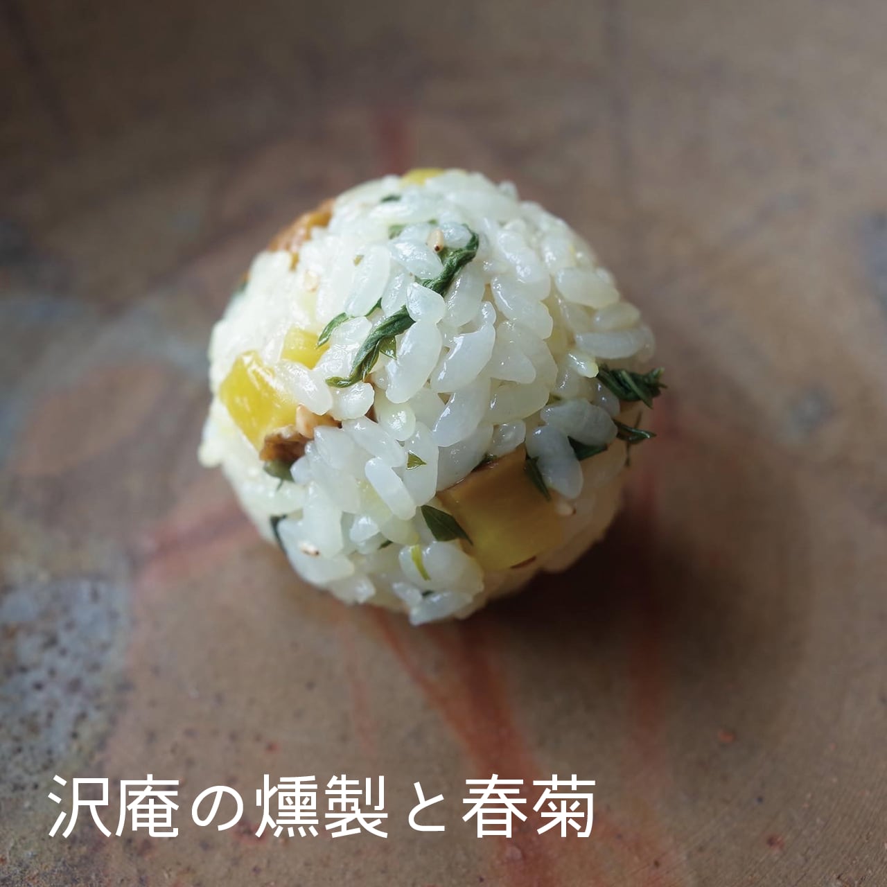 添加物無しの沢庵を燻製し、さっと湯がいた春菊と混ぜ合わせます。